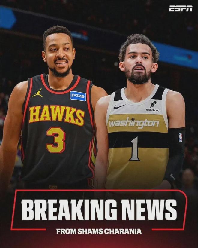 前兩天,老鷹將特雷楊送至奇才,交易回CJ-麥科勒姆和科里-基斯珀特。