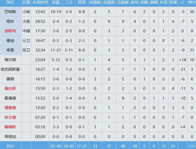 勇士數(shù)據(jù)如下: